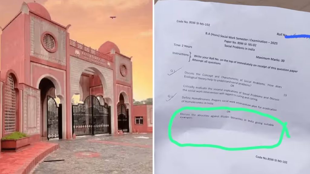 সংবাদমাধ্যম হিন্দুস্তান টাইমসের প্রতিবেদন অনুযায়ী, ঘটনাটি ঘটেছে বিএ (অনার্স) সোশ্যাল ওয়ার্কের প্রথম সেমিস্টারের ‘সোশ্যাল প্রবলেমস ইন ইন্ডিয়া’ বিষয়ের পরীক্ষায়। সেখানে ১৫ নম্বরের একটি প্রশ্ন ছিল: ‘উদাহরণসহ ভারতে মুসলিম সংখ্যালঘুদের ওপর হওয়া অত্যাচার সম্পর্কে আলোচনা করো।’