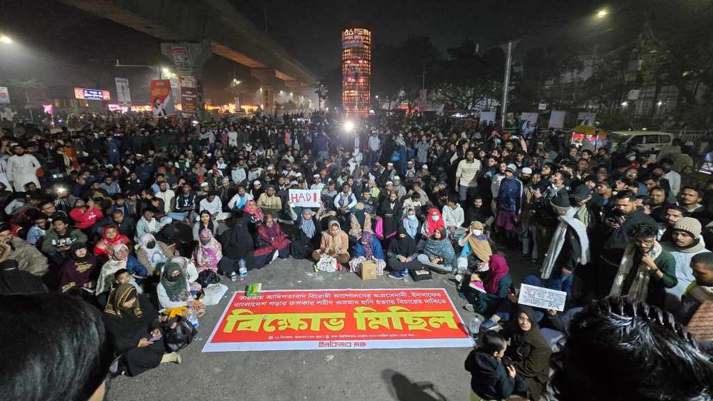 ইনকিলাব মঞ্চের সদস্য শরিফ ওসমান হাদি হত্যার বিচারের দাবিতে রাজধানীর শাহবাগ মোড় অবরোধ করে বিক্ষোভ করছেন সংগঠনের নেতাকর্মীরা। শুক্রবার (২৬ ডিসেম্বর) রাতভর শাহবাগে এই অবস্থান কর্মসূচি চালিয়ে যাওয়ার ঘোষণা দিয়েছে ইনকিলাব মঞ্চ।
